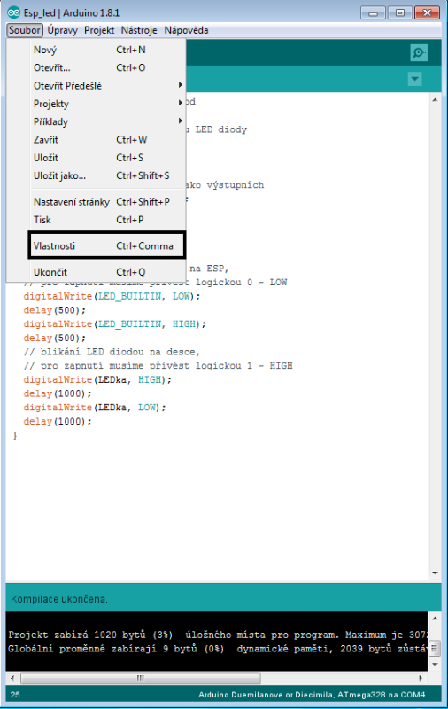 Zprovoznění programování ESP8266 skrze Arduino IDE