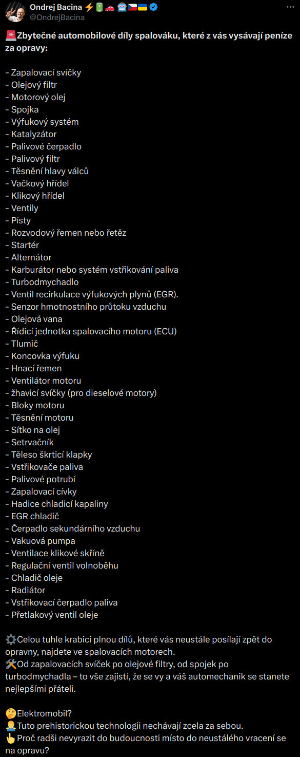 Na této stránce budu koncentrovat vysvětlení mýtů, které se neustále opakují. Co půjde, tak budu zdrojovat. Dalším zdrojem je: https://www.xpari.cz/2018/01/auta-na-elektriku-jsou-nesmysl.html