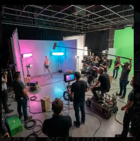 Urob behind the scenes záber z natáčania podľa tohto obrázku hollywoodské štúdio pohľad z boku zhora